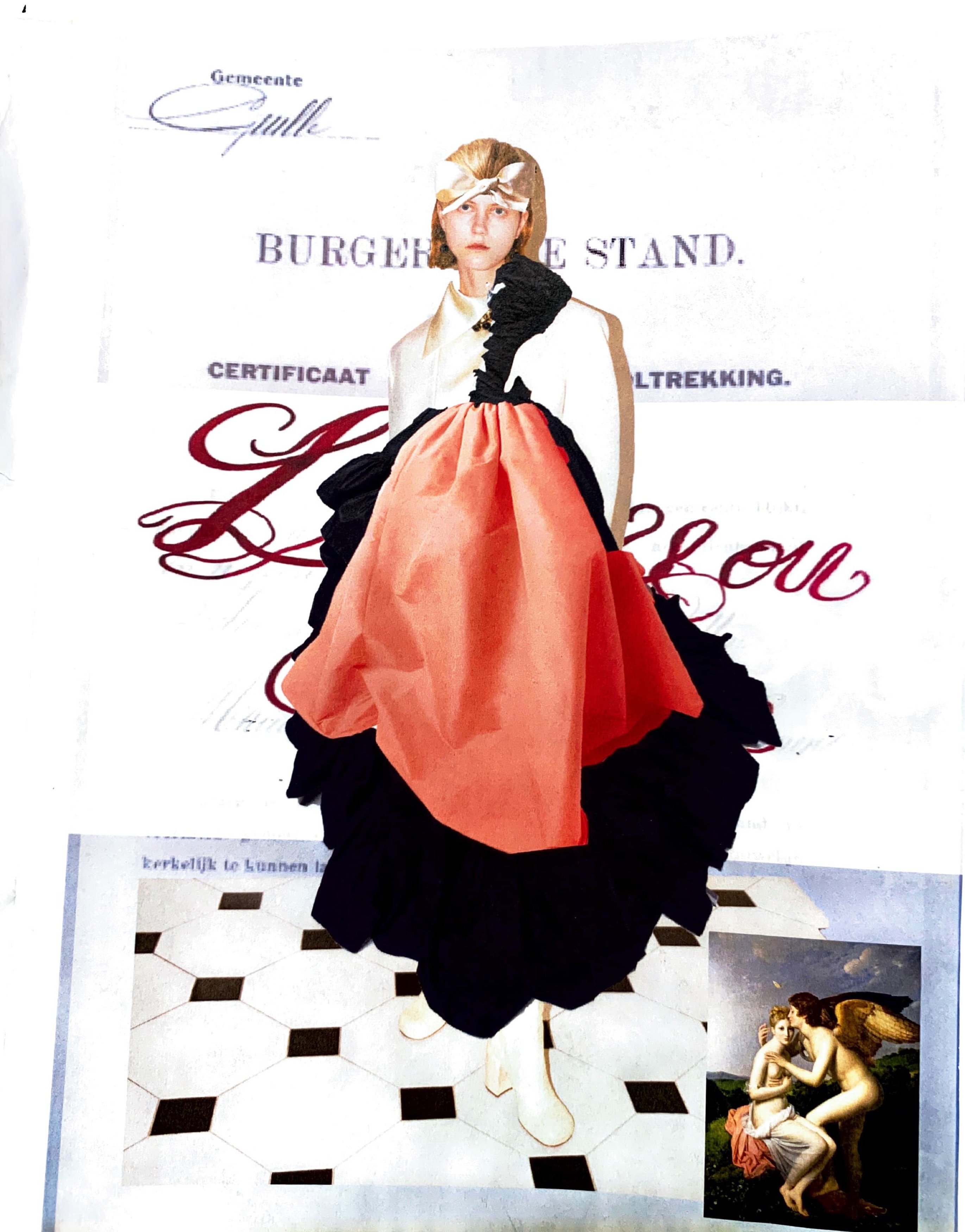 Currently working on her latest collection, where she explores new conventions in bridal wear. Through experiment and play she explores her own body and silhouettes, often the starting point for her work. Her own life and surroundings inspire her to create subjects from within.